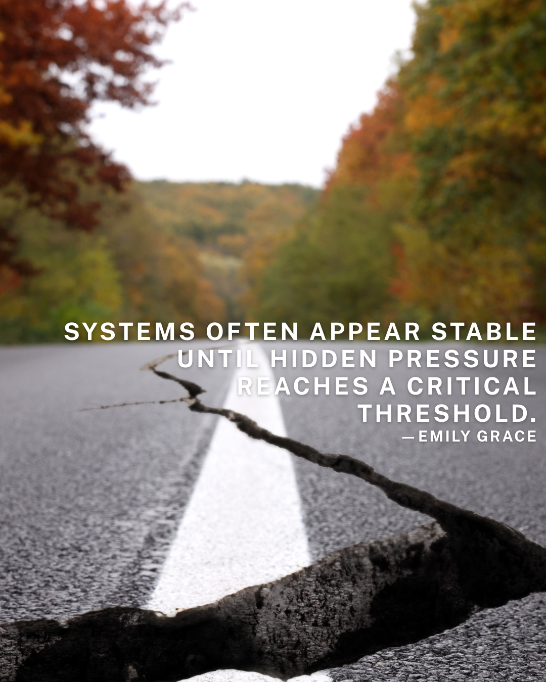 Across many kinds of systems— ecological, mechanical, and social— change rarely unfolds in a smooth, gradual line forever. Instead, pressure tends to accumulate quietly over time until the system reaches a point where it can no longer absorb what it is carrying.